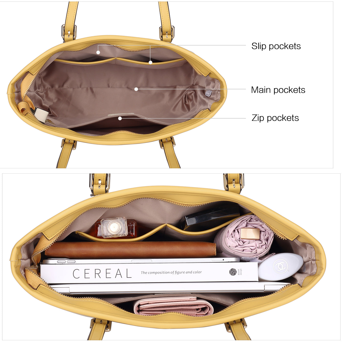 Pocket Structure : Inside handbags with main space for storage, Extra 2 slip pockets & 1 inner zipper pocket for item division. Lightweight, but with roomy capacity, it is suitable for more occasion, whether in daily, the office or for travel. The handbags pocket design is practical enough to also be a leisure handbags or work tote and will fit daily and other professional items.