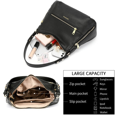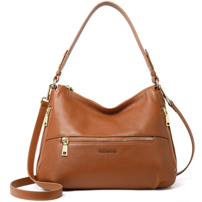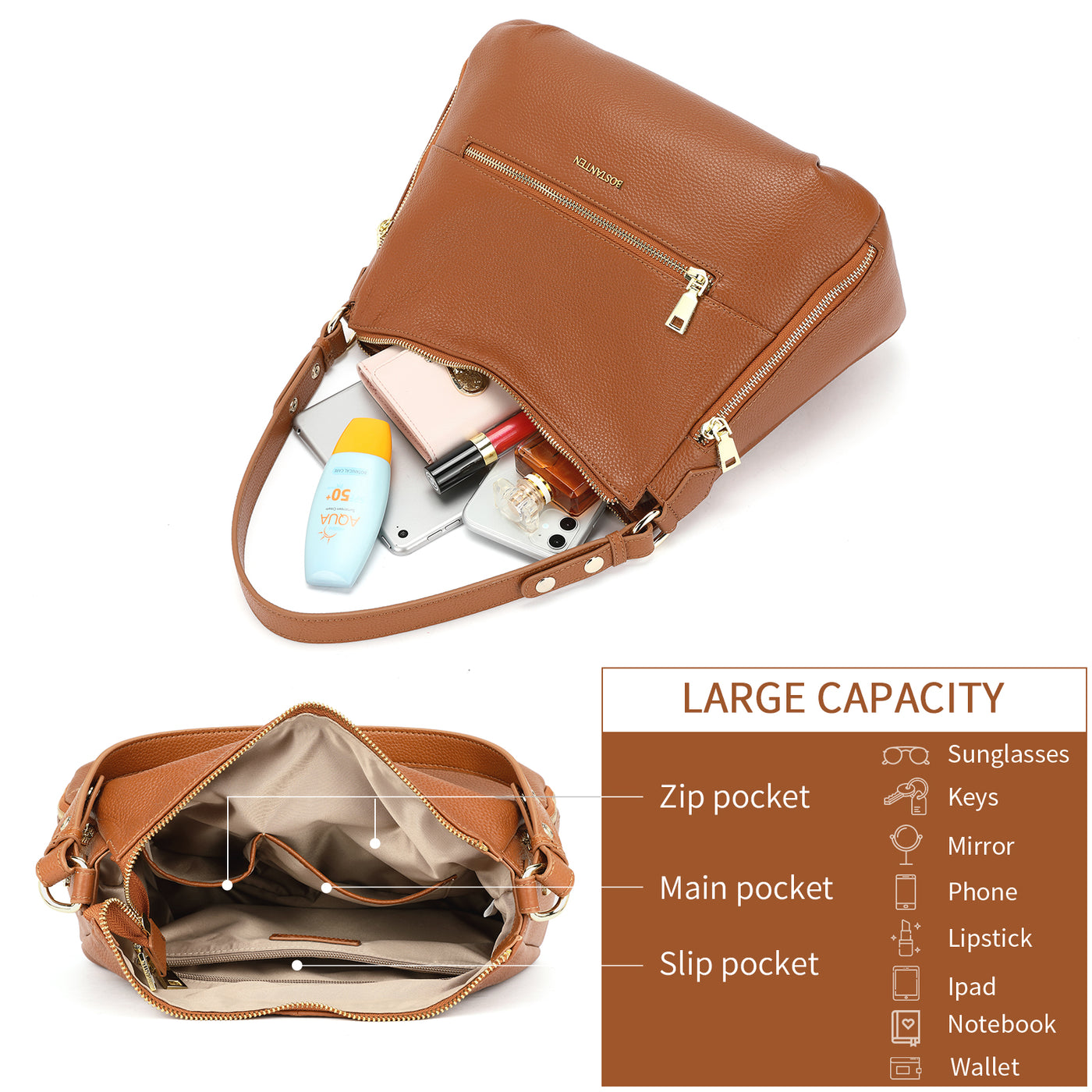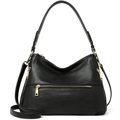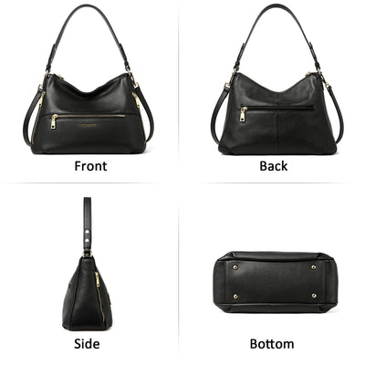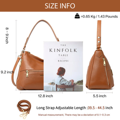 • Hign-end Material: Made of pebble genuine leather with gold-tone metal hardware,both soft and lightweight feature. Durable zipper fitting keep bags access in safer condition. Nice feet buttom studs and soft fabric lining designed in bags, New hobo collections in your each day.