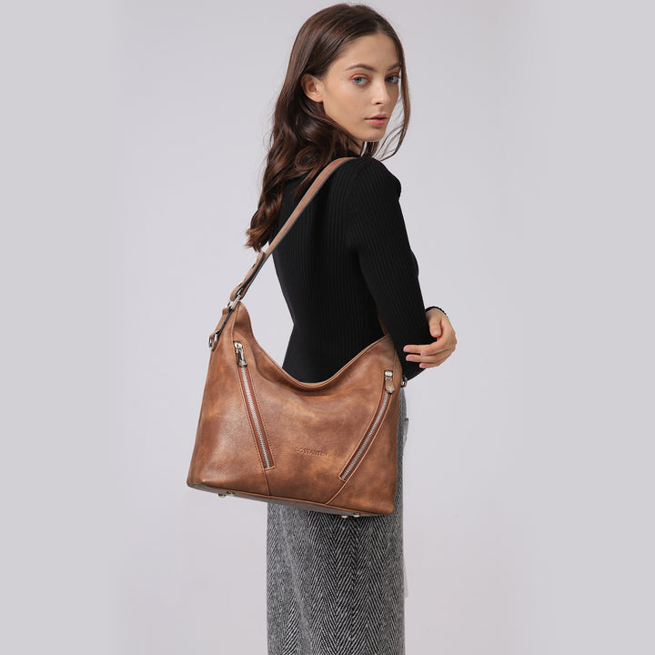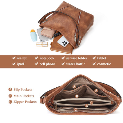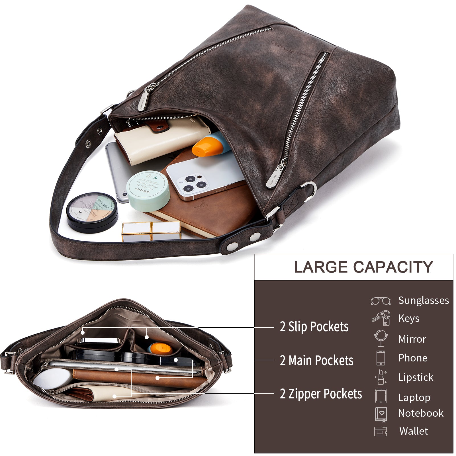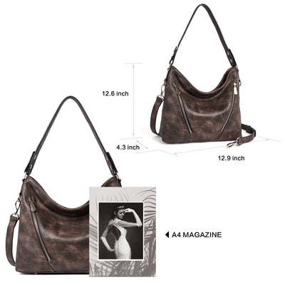 High Quality -- The shoulder hobo bag is made of genuine cow leather by professional artisans. Durable fabric lining with custom silver hardware that make the handbag more luxury, generous and elegant.