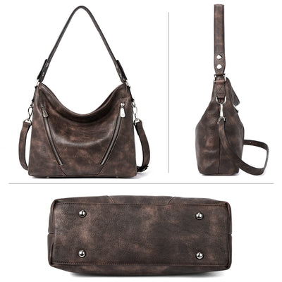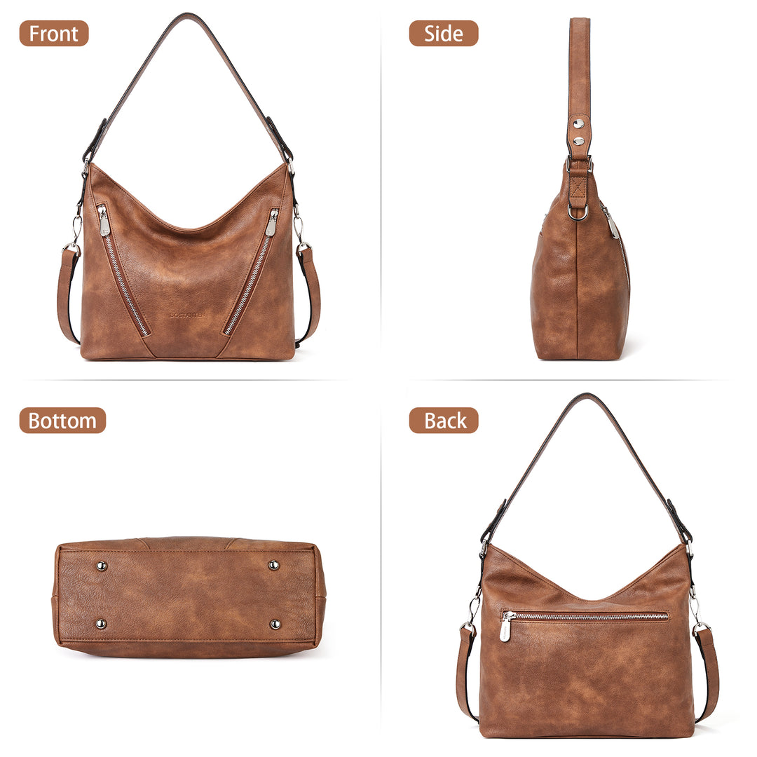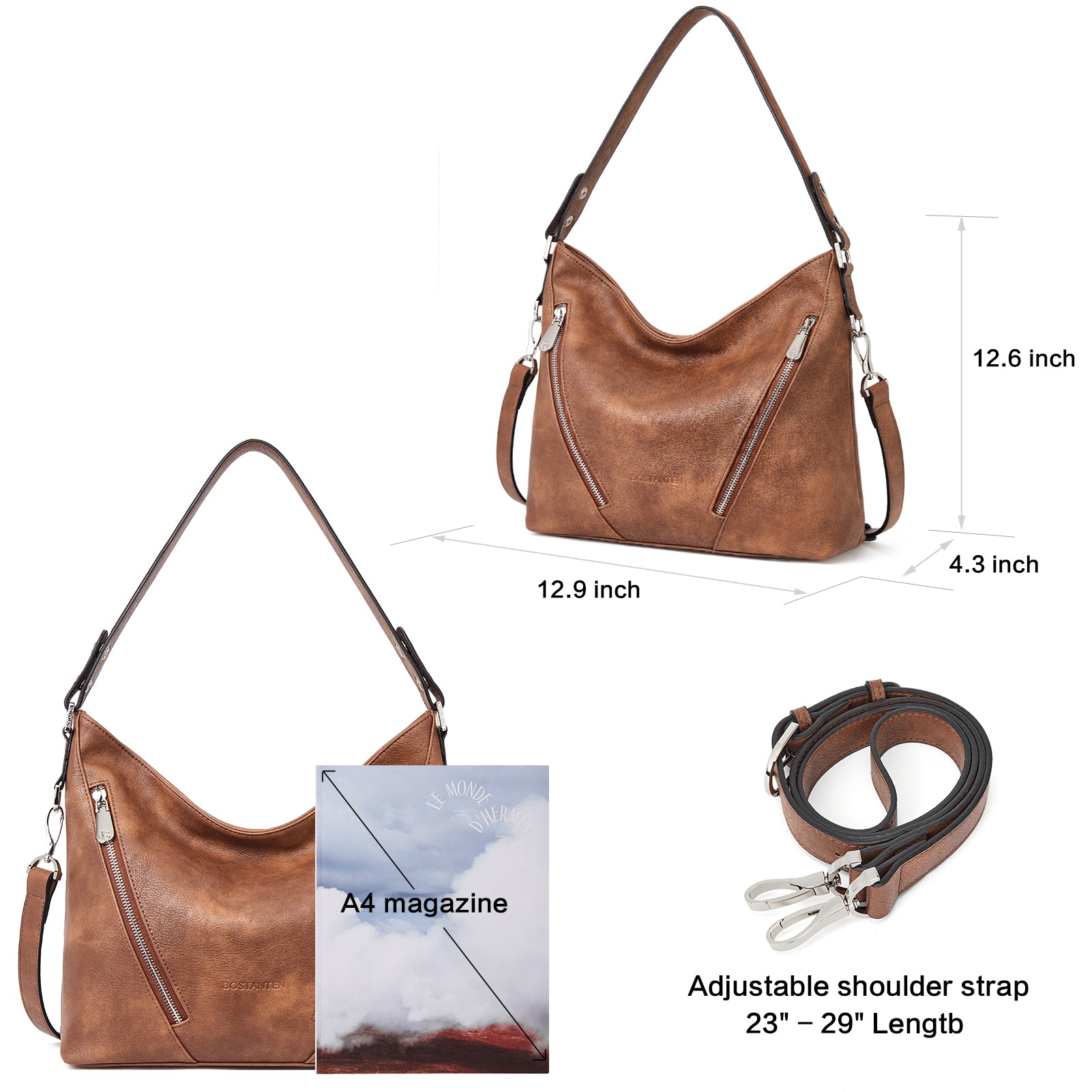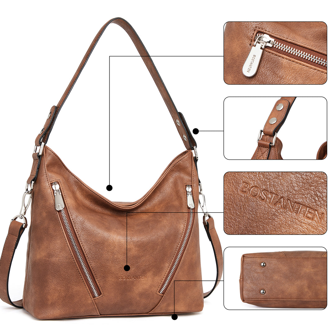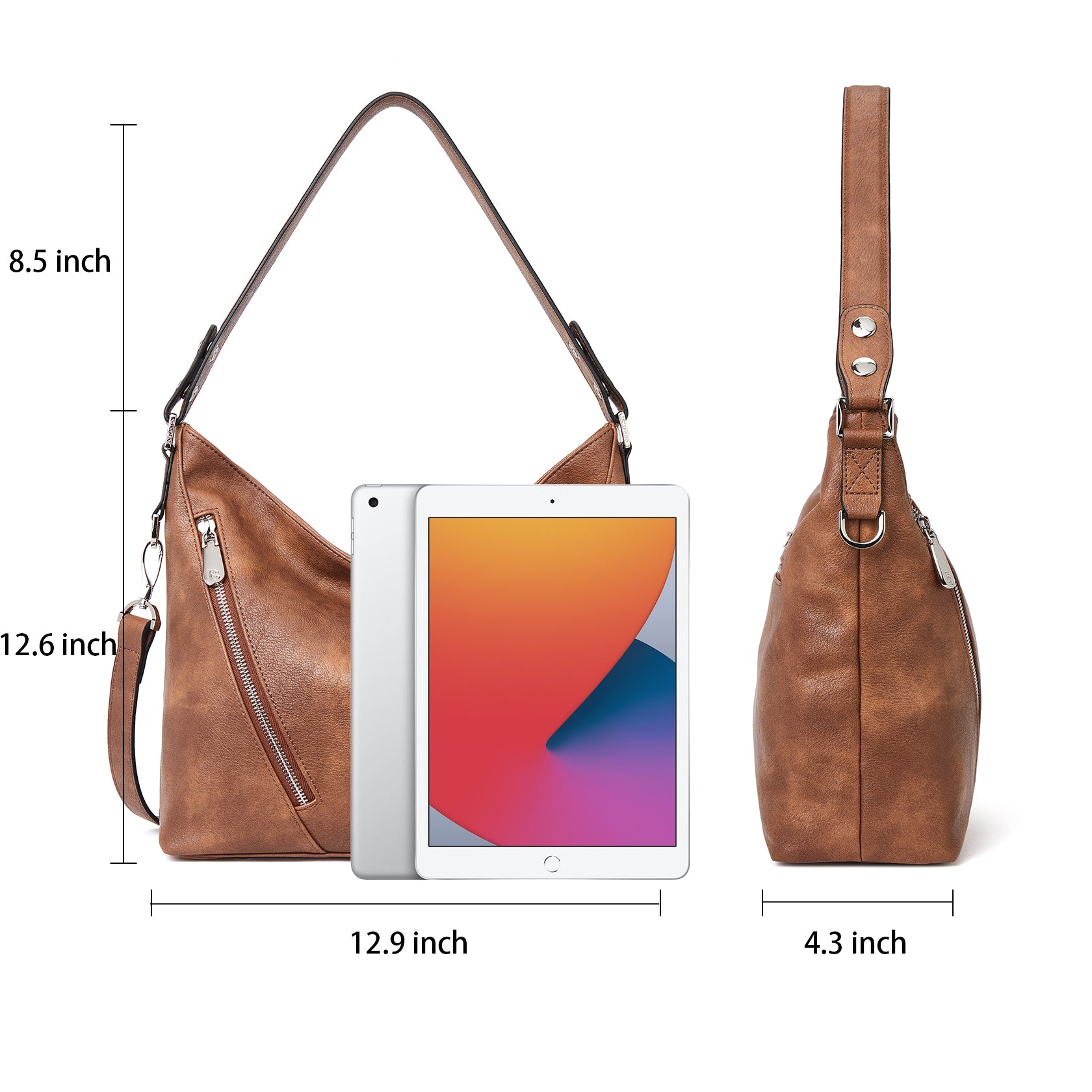 Feature -- Two shoulder straps make you can comfortable wear this hobo bag in three ways, and match all of your clothing and occations. The short shoulder handle can remove when you use the adjustable strap.