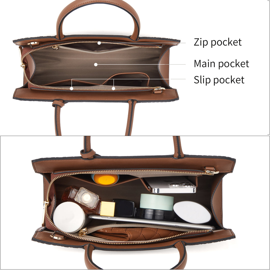 • 💗Practical Structure: A handbag is a must-have collection in your wardrobe if you are someone who hates having to hold various things in your hands. Top Zipper closure, Definetely keep safe access when carrying. The main pocket with 1 zip slot + 2 slip slots, To fit all sizes of phones, roomy enough to hold wallet,cosmetic, keys, sunglasses,etc. It will keep your essentials within reach and never going out of style.