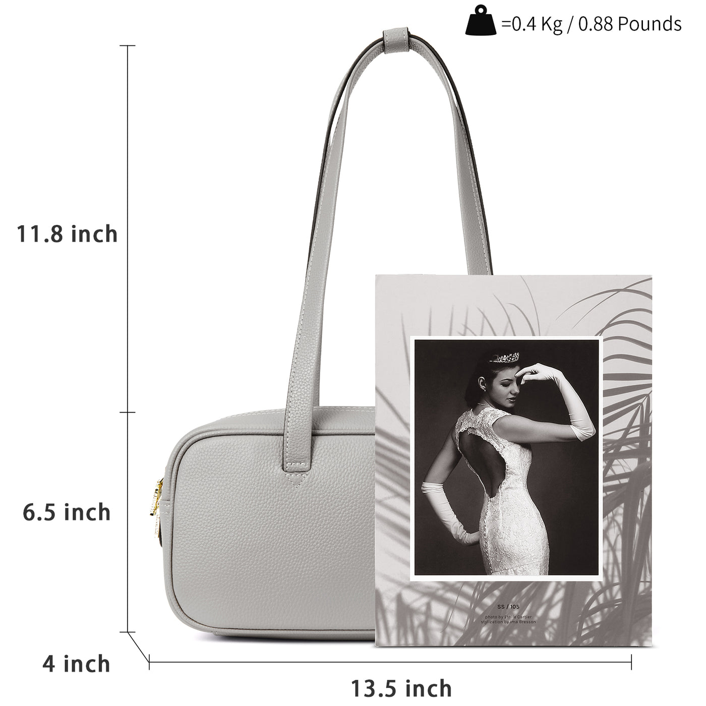 Dimensions & Weight : Mearsure the handbag is 13.5”(L) x 4”(W) x 6.5”(H) inch, Dual top handle strap is 11.8 height drop. There is a buckle-tag could connect strap that reduce strap dropping off from shoulder. Net weight is about 0.88 pounds / 0.4 kg. And carry the lightweight handbag with the strap comfortably as a shoulder purse or top handle bag.