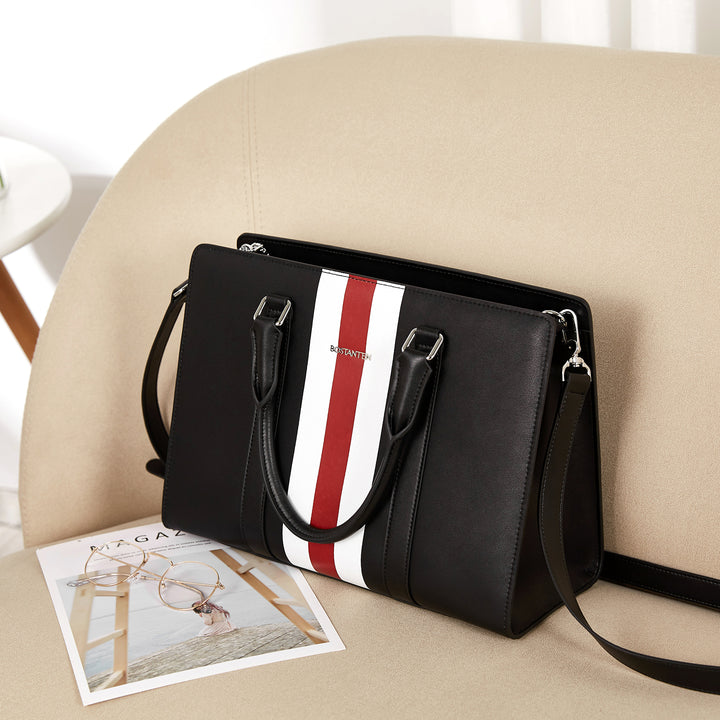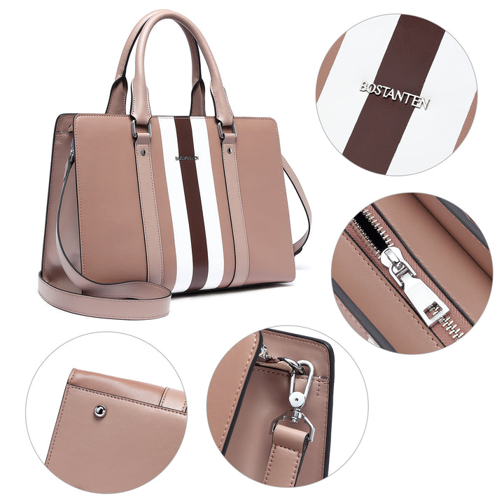 • Elegant Design :Pure color matching stripe pattern, Embelish with durable silver hardware and tonal logo. Elegant and stylish purse in medium satchel style , suitable for more life scenarios. Best feminine options to gift in special holiday.