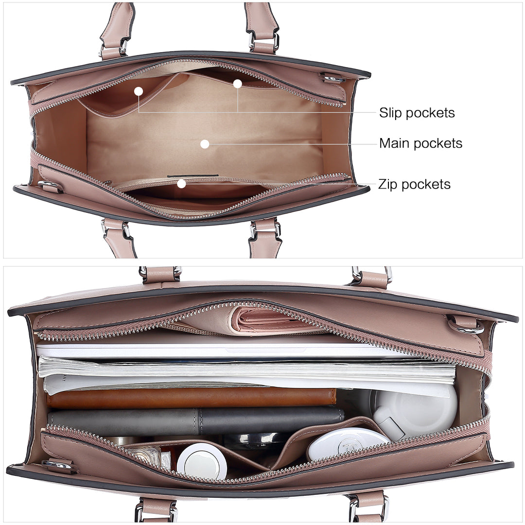 • Structure :This leather handbag inner opened with a spacious main zipper pocket.Equipped with 1 wall zipper pocket and 2 slip slots for singel storage. Simple but roomy in daily using, this tote purses can easily accommodate iPhone, wallet, cosmetics, and other daily necessities. Perfect to use as daily handbags for work, travek, shopping, or dating.