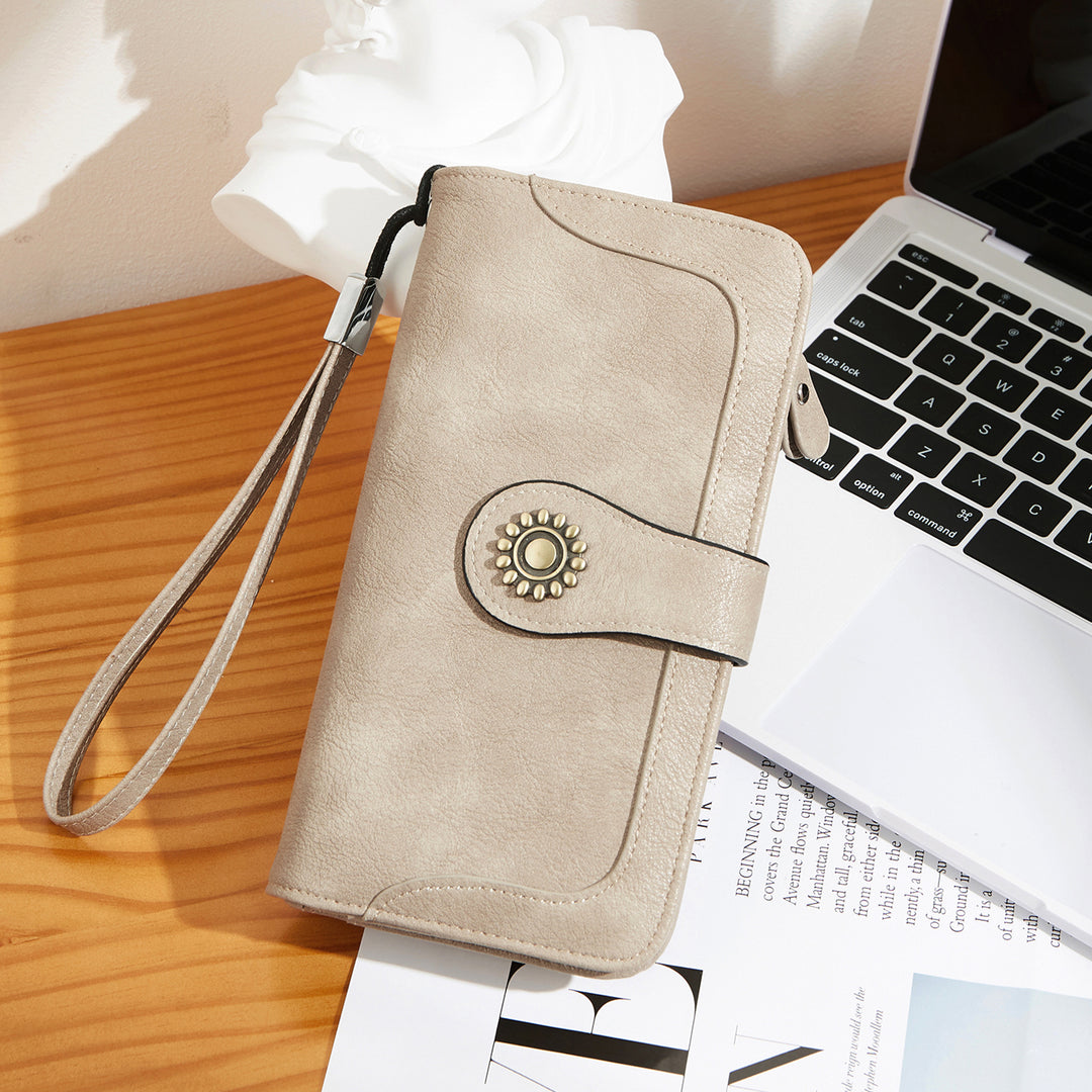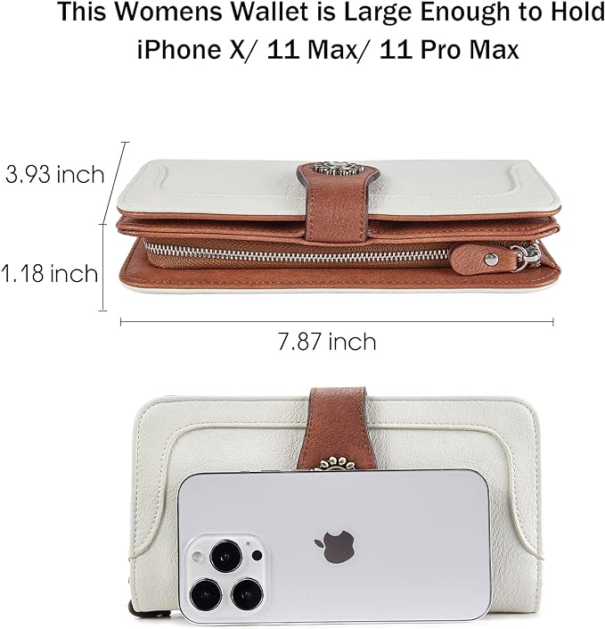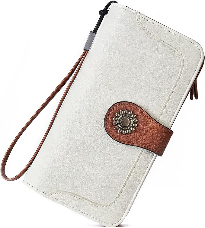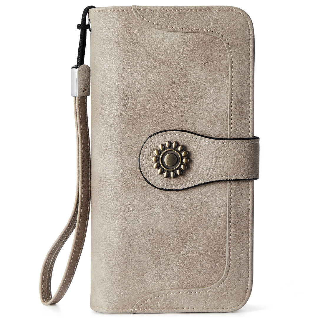 Unique Features -- Made of high quality leather. Durable zipper and snap for long time use. Each wallets for women comes with a wrist strap, biofold wallet is convenient to use. Sun flower buckle and hollow design are in vintage style and more fashion.