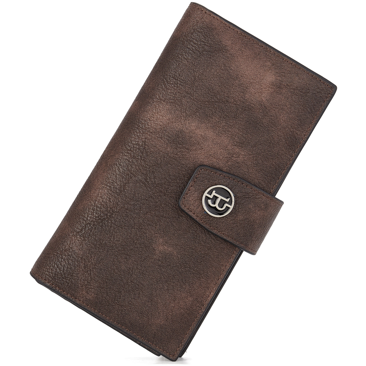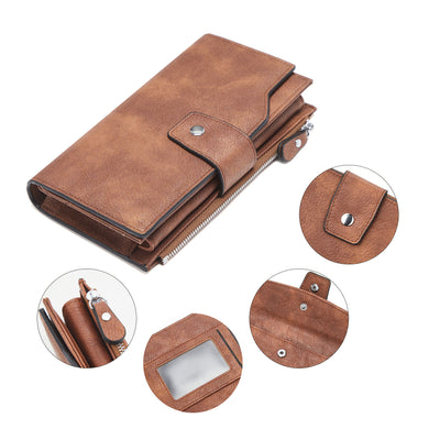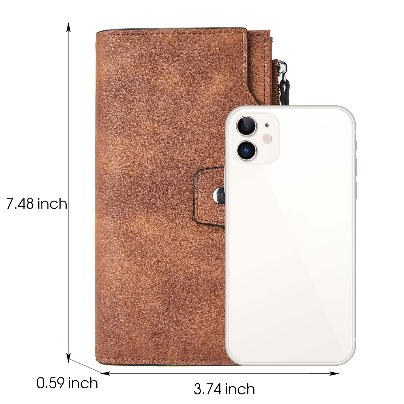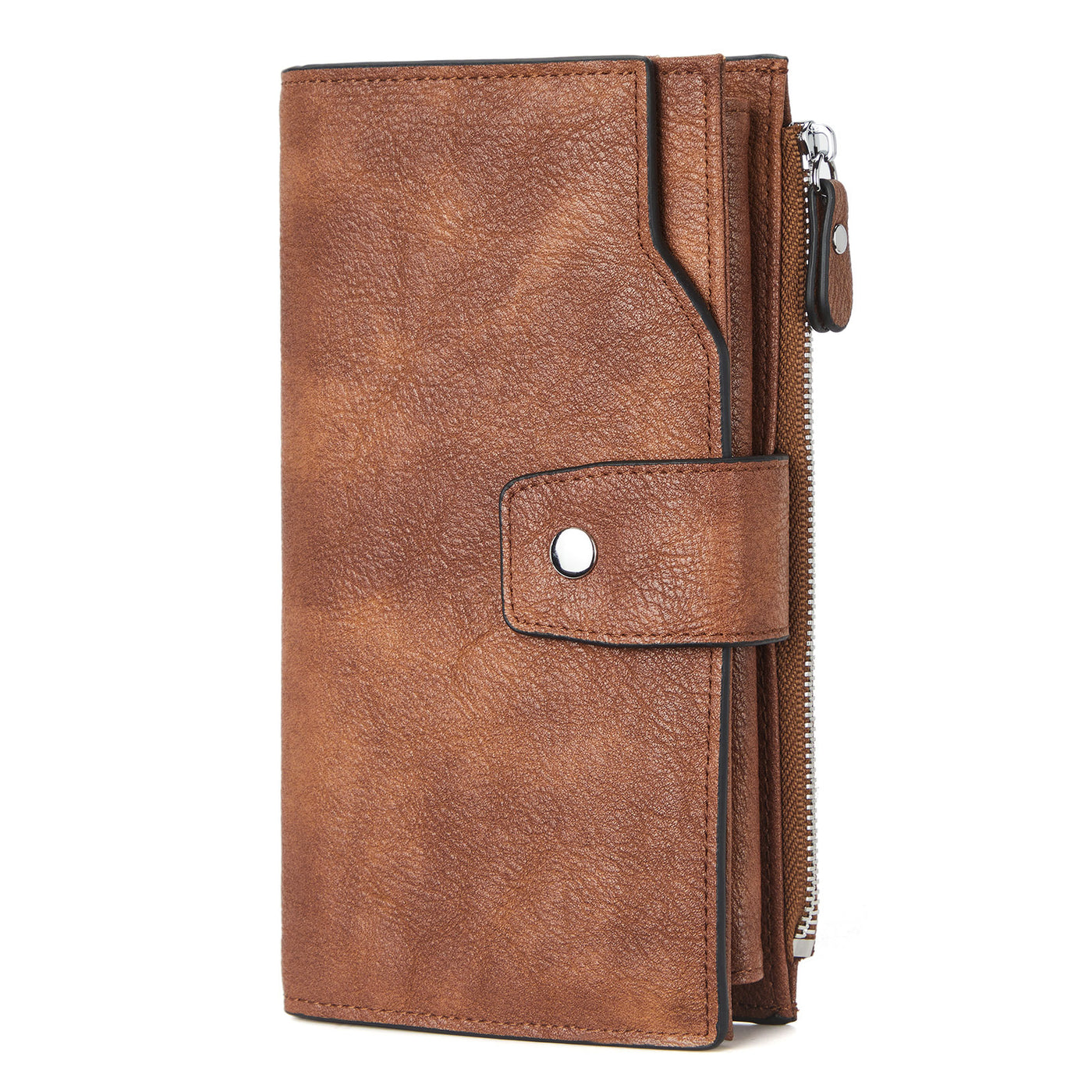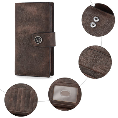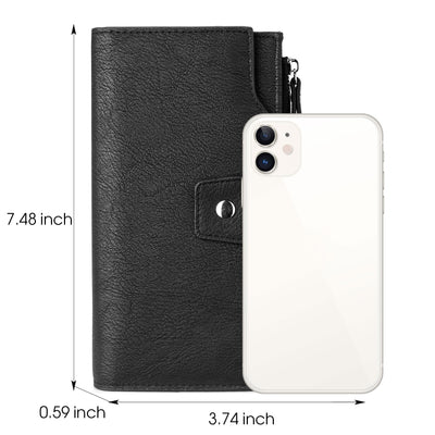 Functional Design - 20 credit card slots, 1 ID window, 1 magnetic buckle pocket, 1 zipper coin pocket, and 9 receipt pockets are enough for your important bills and receipts. Combination of zipper closure and magnetic bottom keeps your money safety. Large capacity design allow this wallet to comfortably hold your cell phone, coin, cash, credit card, and other small things.