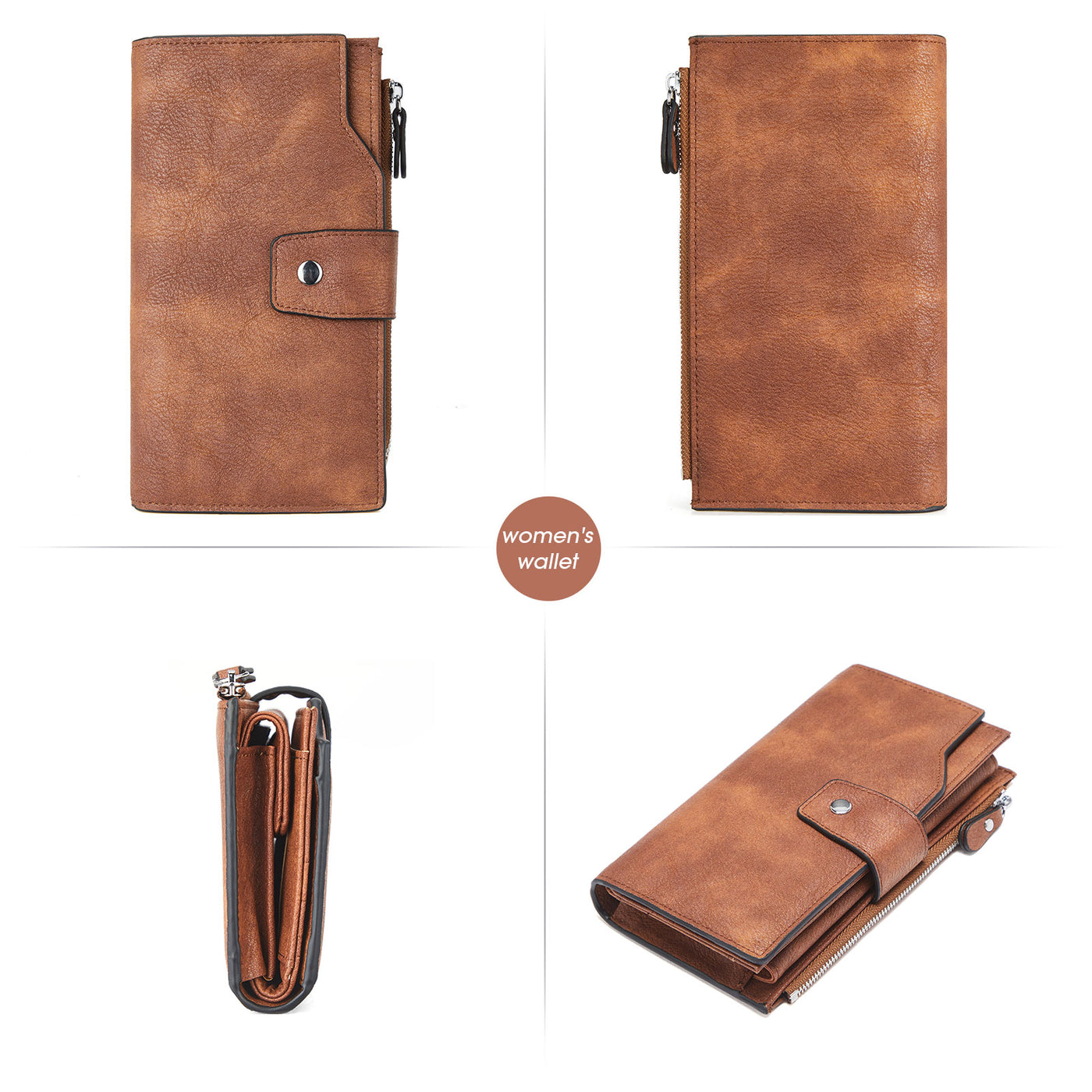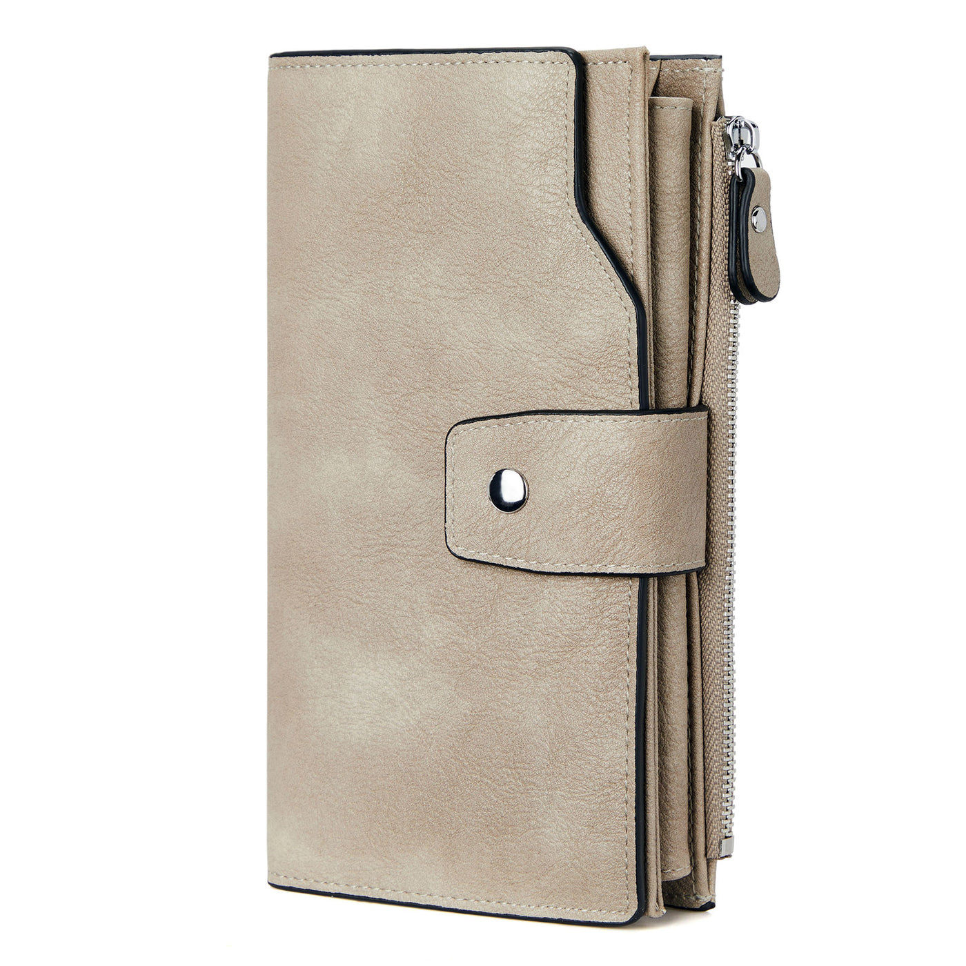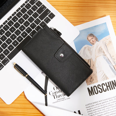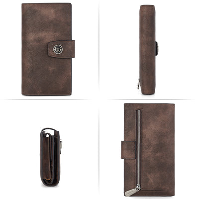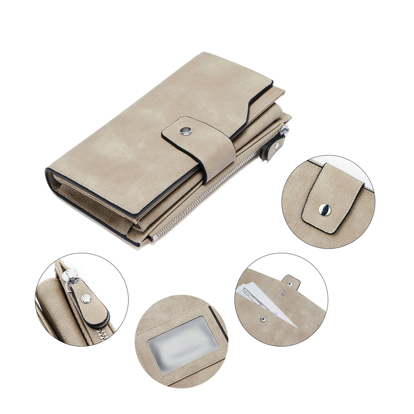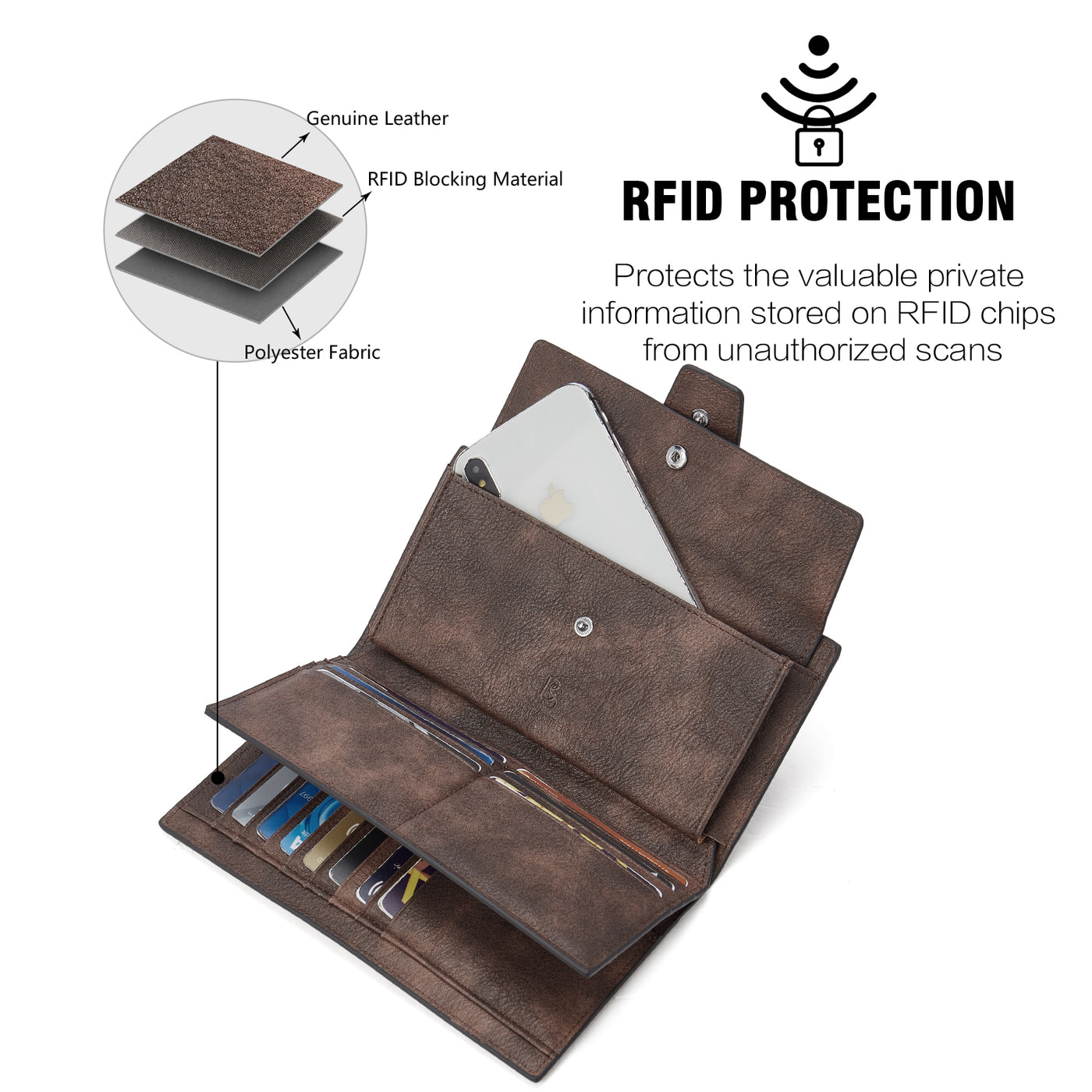 Functional Design - 20 credit card slots, 1 ID window, 1 magnetic buckle pocket, 1 zipper coin pocket, and 9 receipt pockets are enough for your important bills and receipts. Combination of zipper closure and magnetic bottom keeps your money safety. Large capacity design allow this wallet to comfortably hold your cell phone, coin, cash, credit card, and other small things.