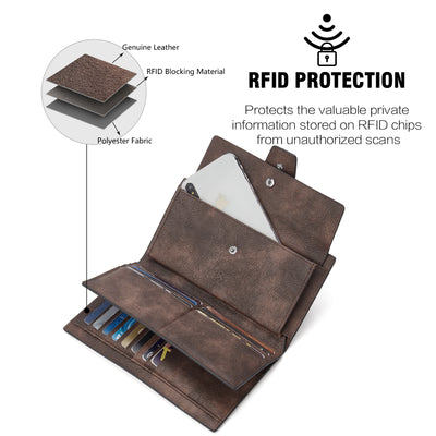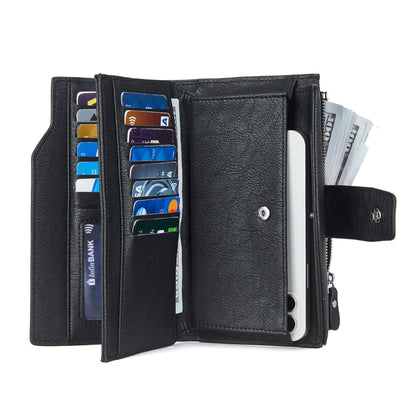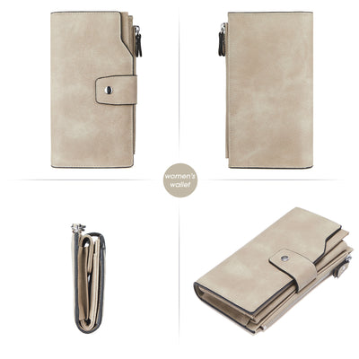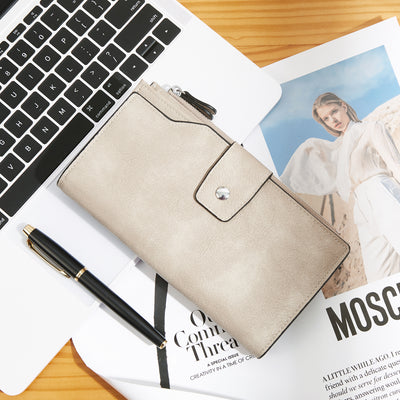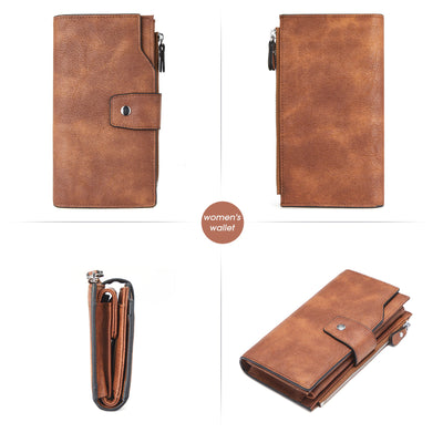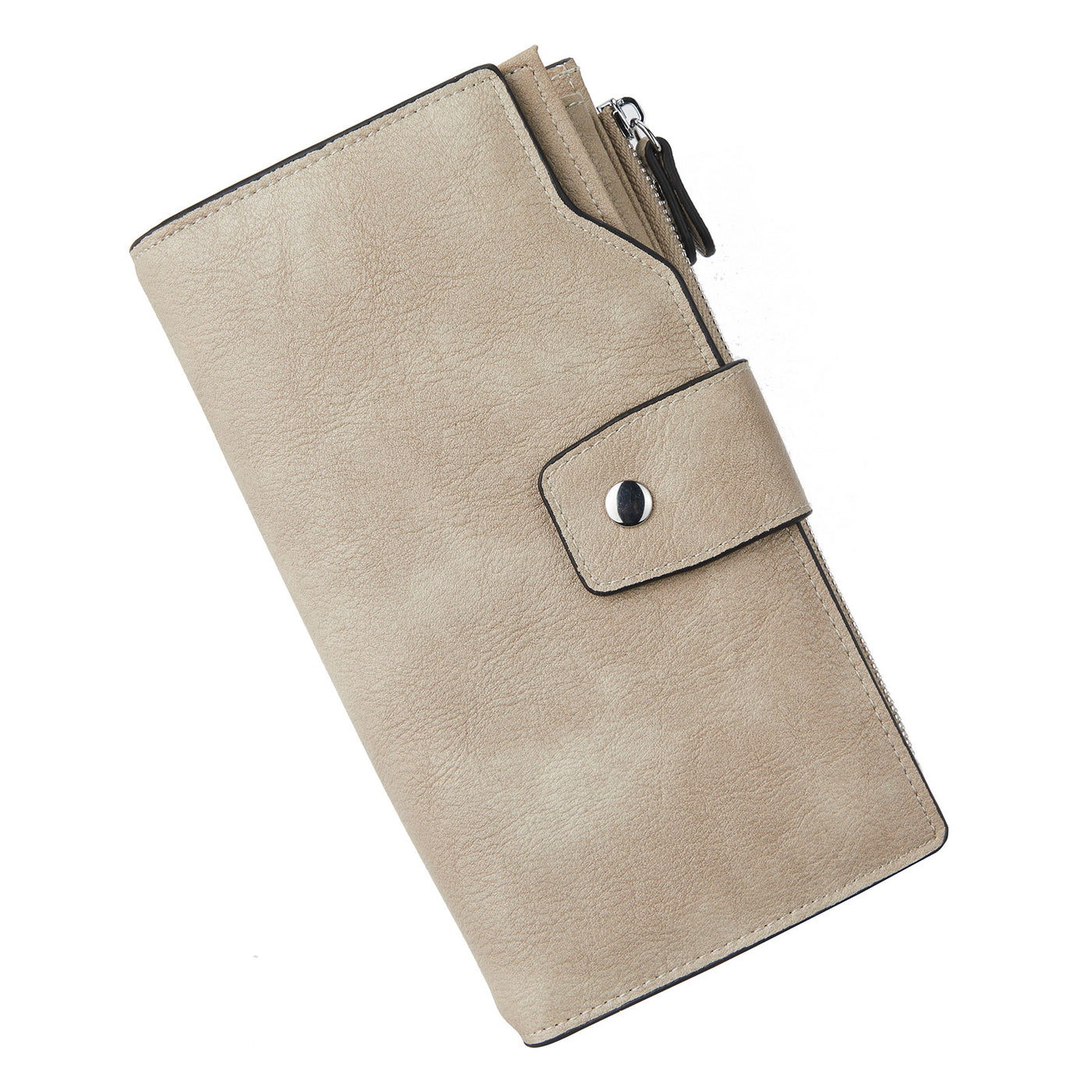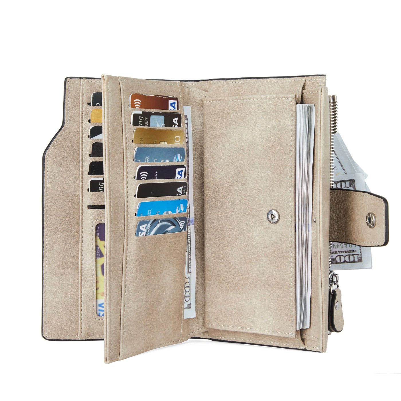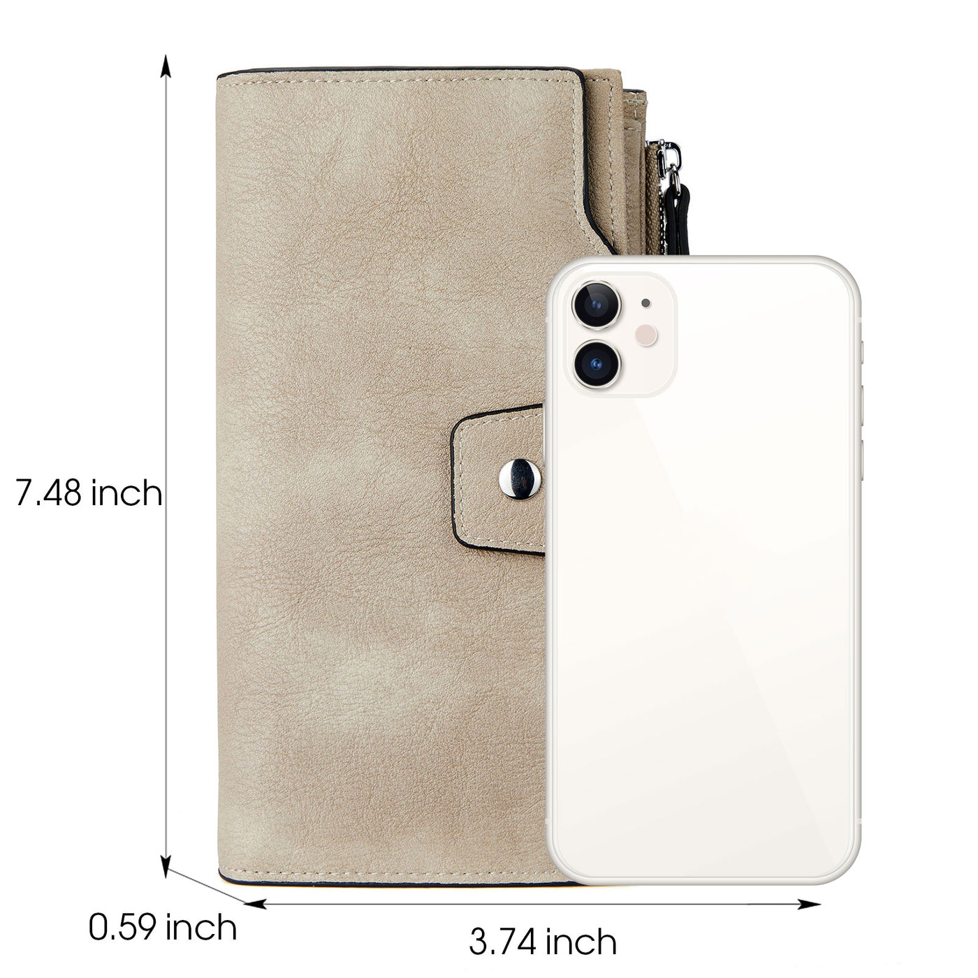 Functional Design - 20 credit card slots, 1 ID window, 1 magnetic buckle pocket, 1 zipper coin pocket, and 9 receipt pockets are enough for your important bills and receipts. Combination of zipper closure and magnetic bottom keeps your money safety. Large capacity design allow this wallet to comfortably hold your cell phone, coin, cash, credit card, and other small things.