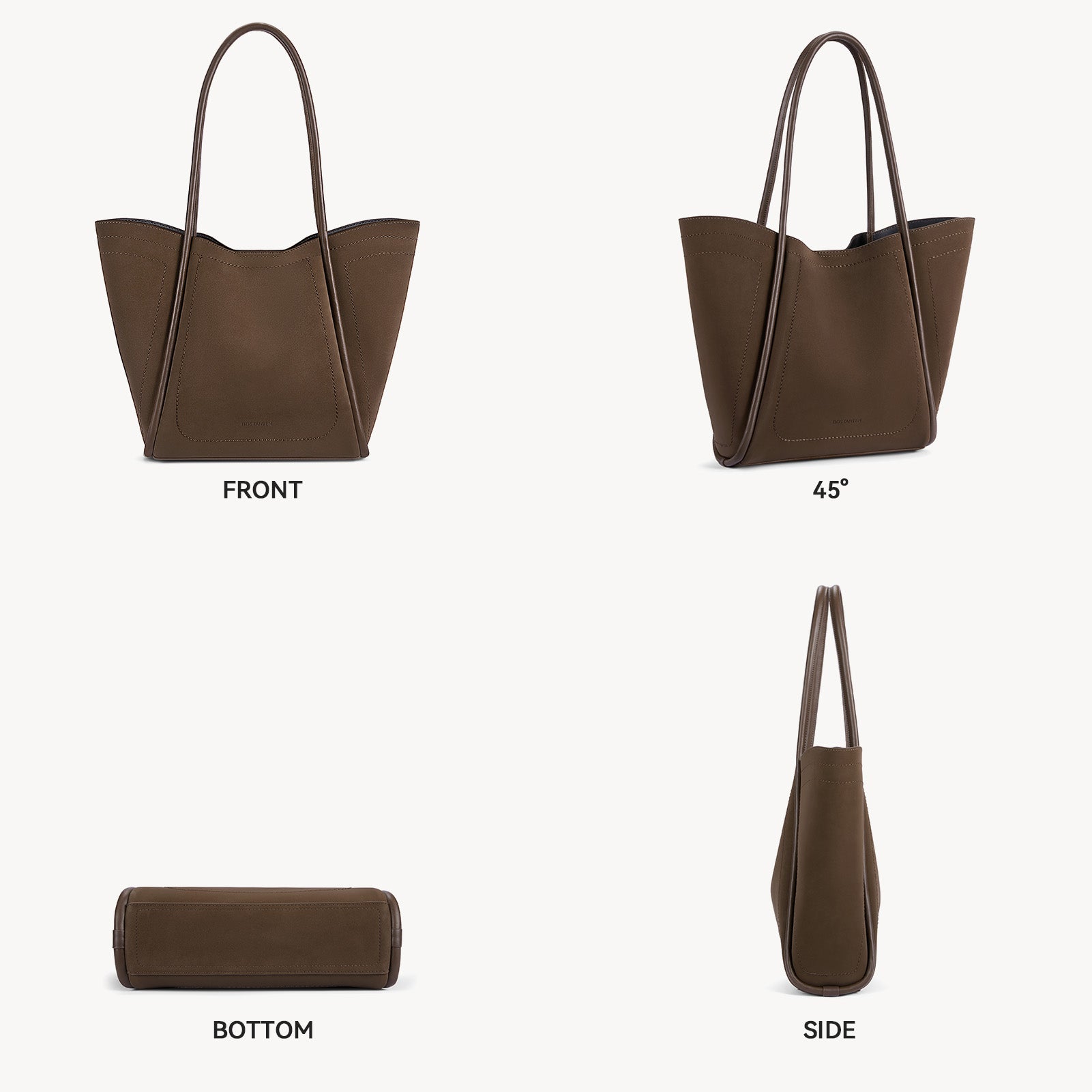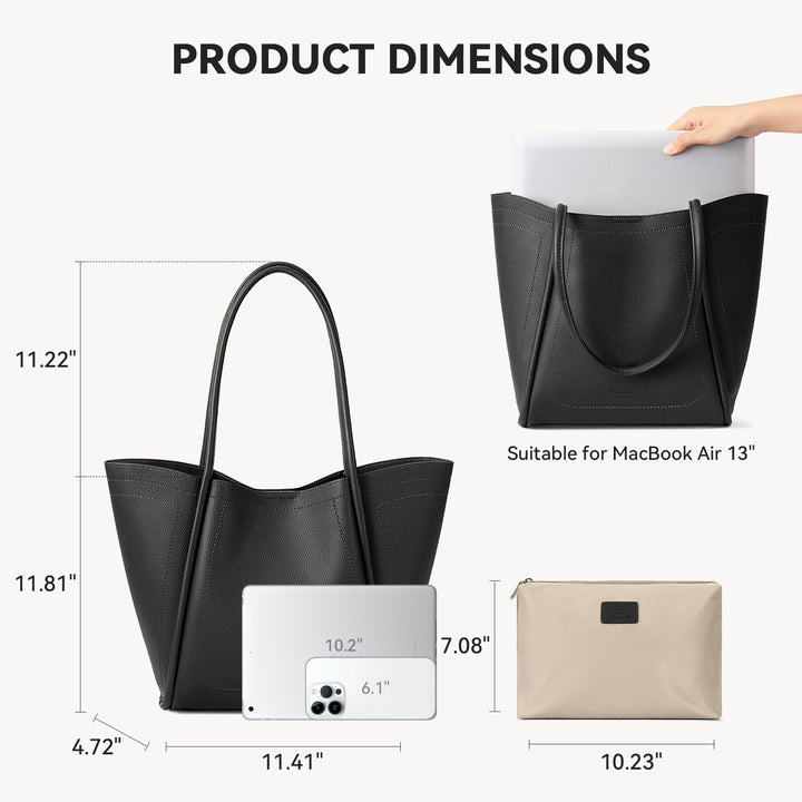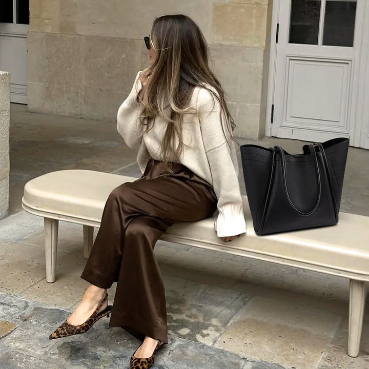 The bag meets the need for a stylish, large-capacity bag that's easy to pair, offering both practicality and elegance for professionals.