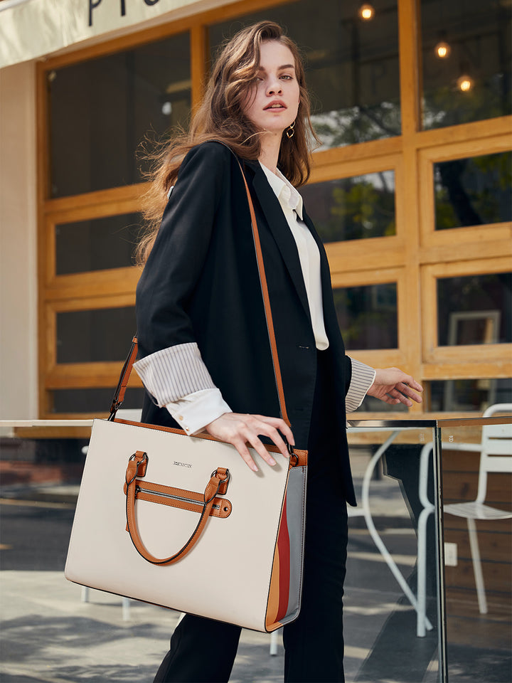 The colorful elements on the side make this women's briefcase a high fashion sense.