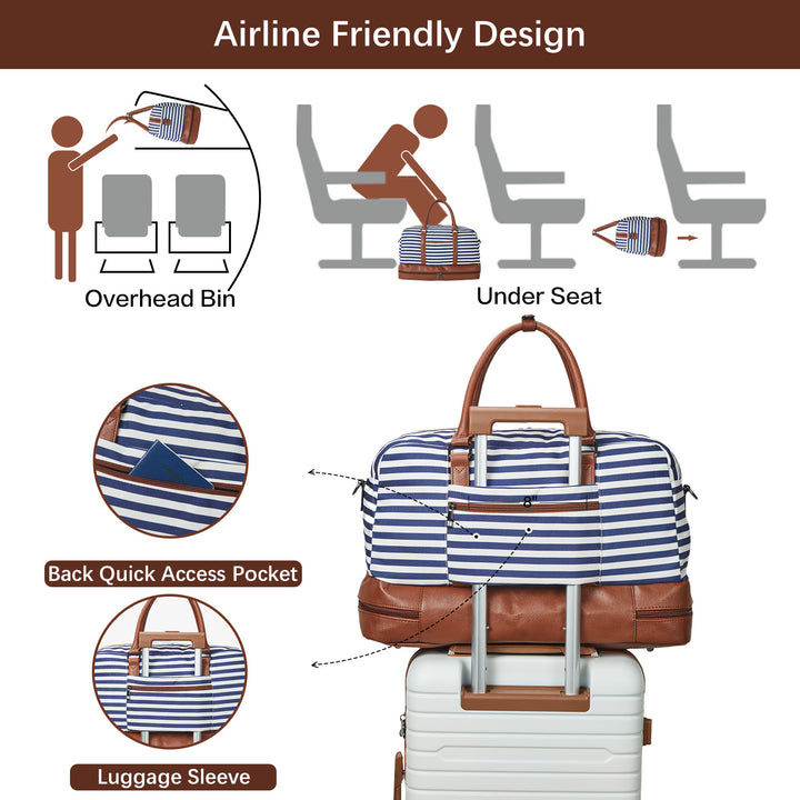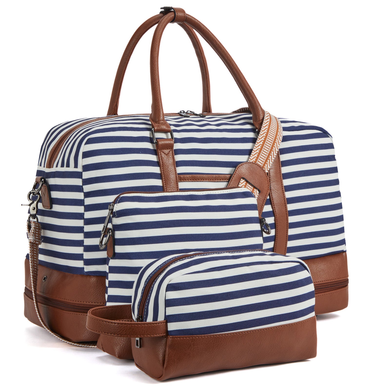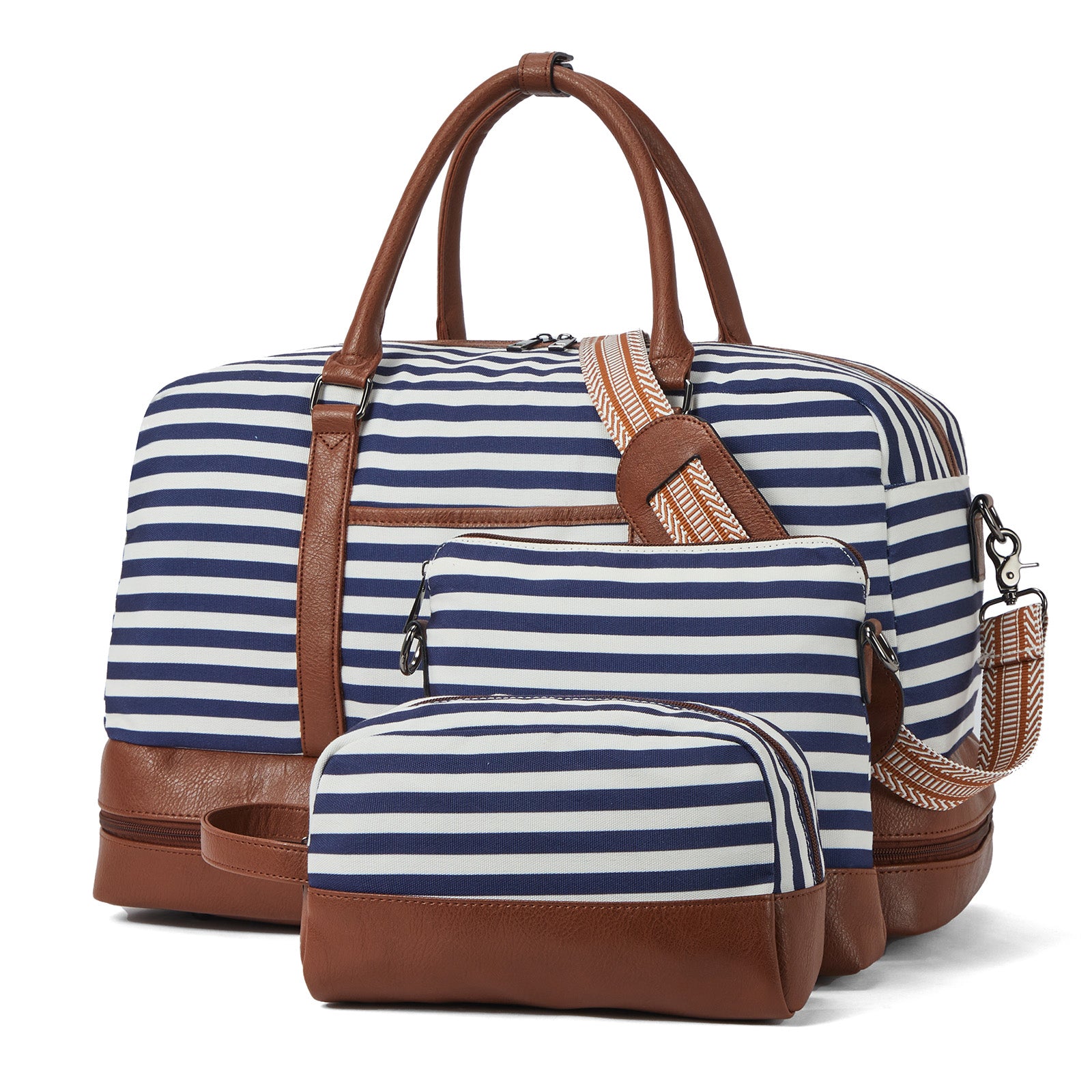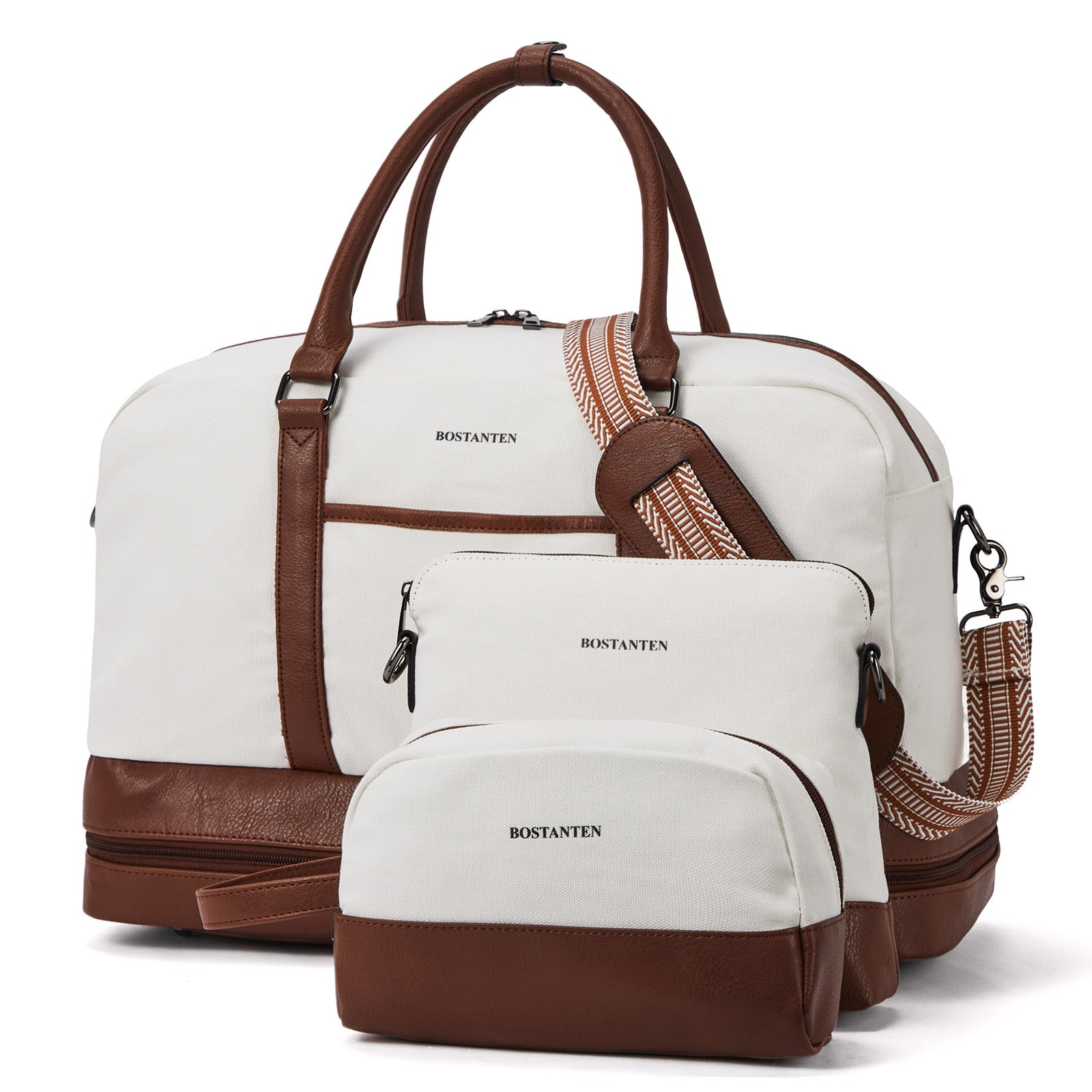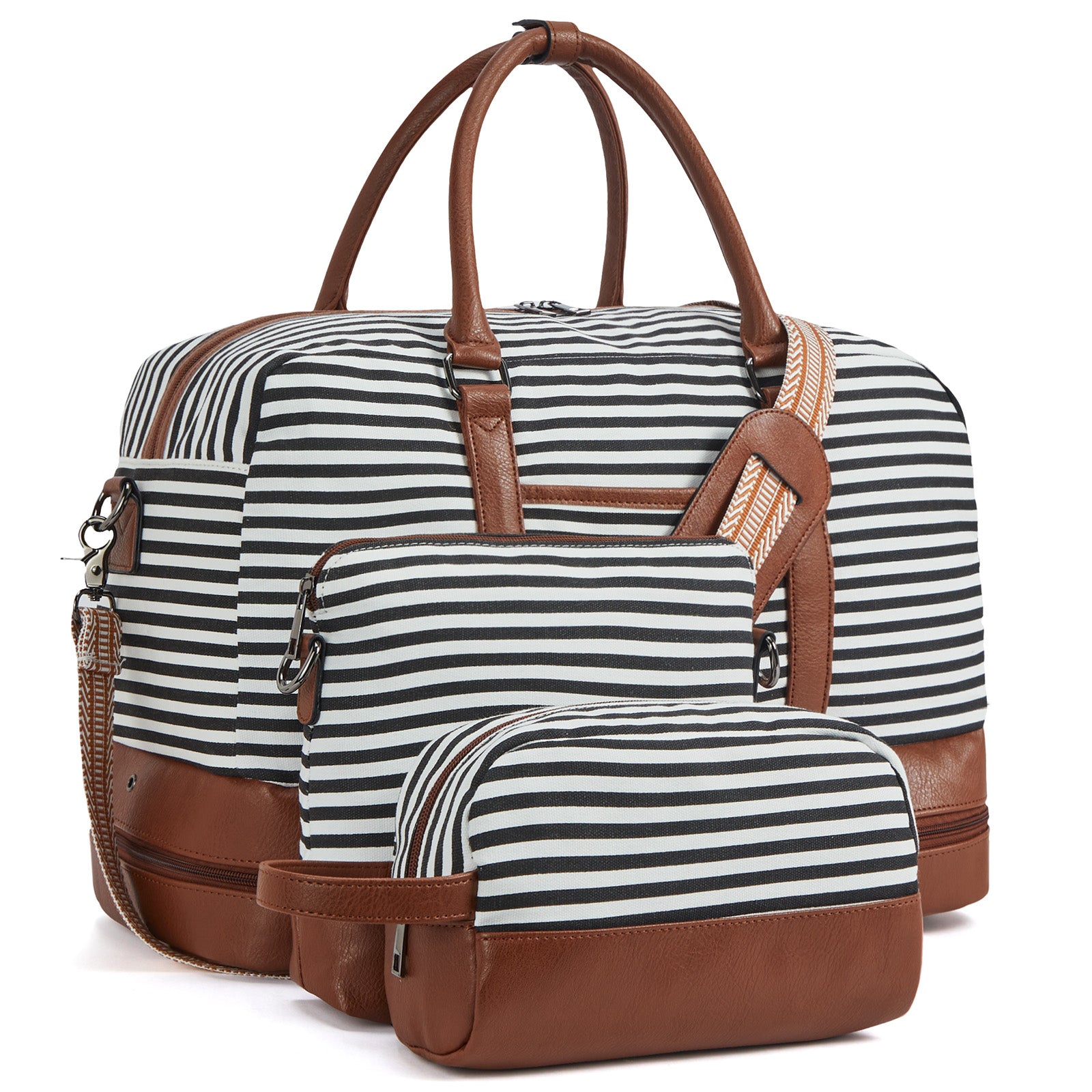 • High-End Material -- This large weekender bag is handmade by a professional craftsman with high-quality canvas, soft khaki fabric lining, and sturdy hardware. Well-knit stitches make it bear heavier items without tearing. Classic color combinations make it stylish, and also easy to match most outfits and occasions.