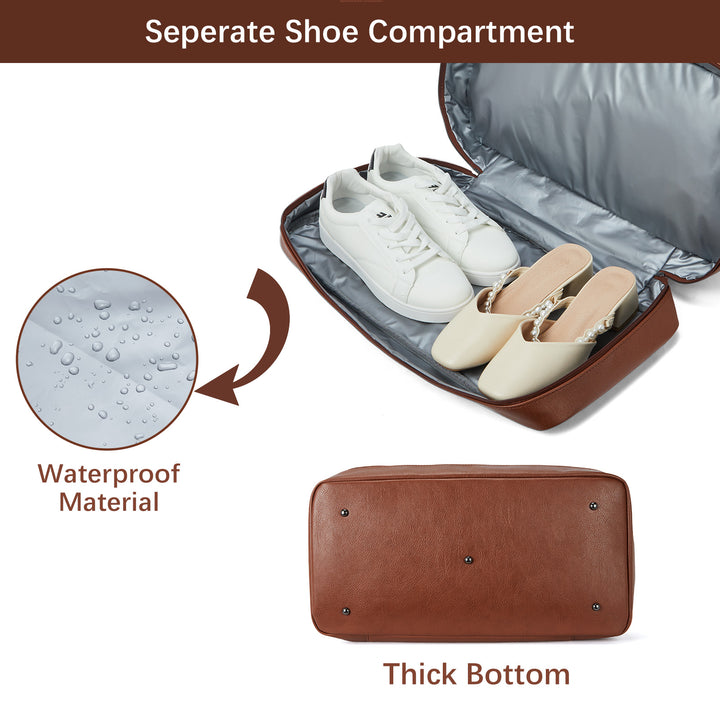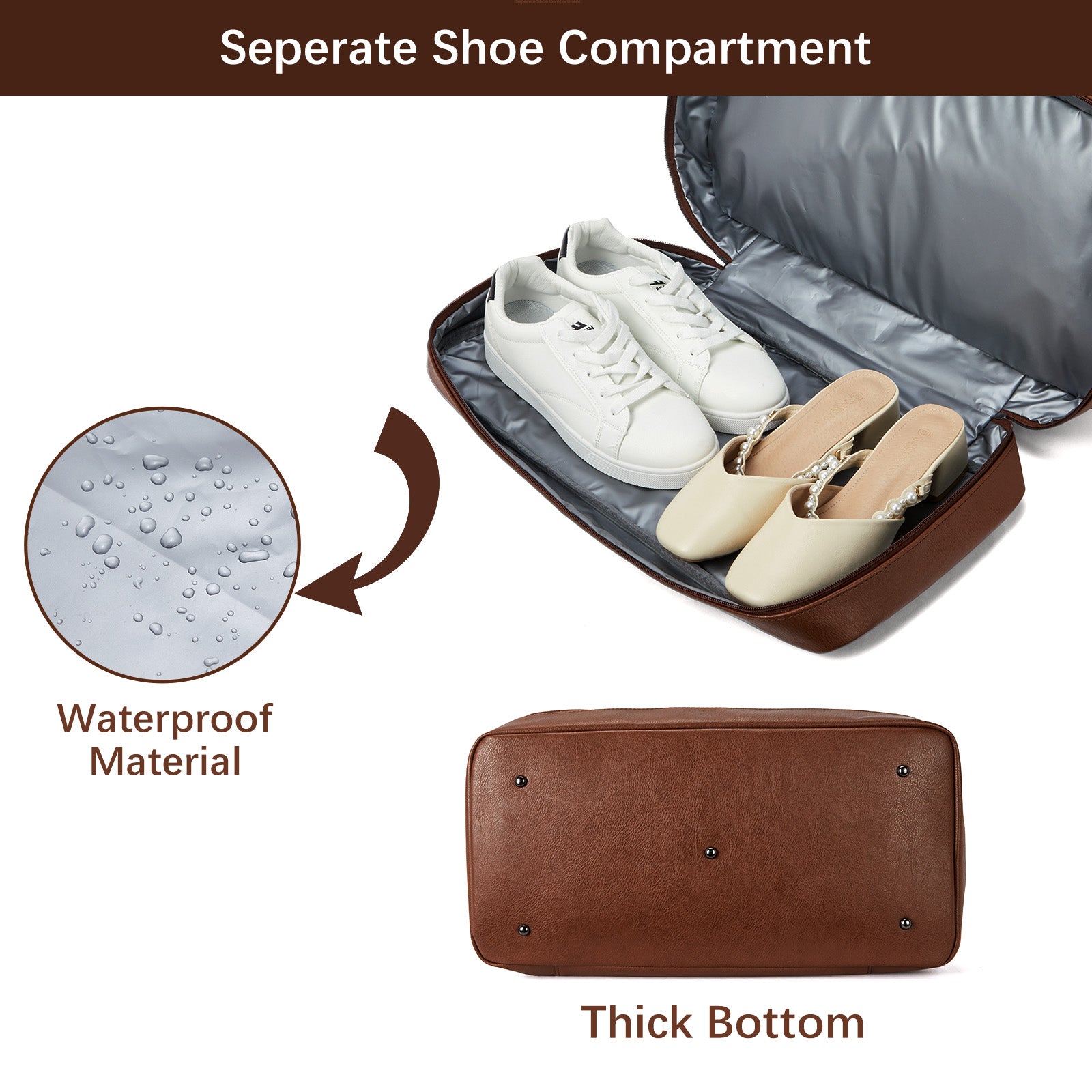 • Separate Shoe Compartment -- The size is 20.47’’(L)*9.65’’(W)*3.46’’(H).It can hold your 2~3 pairs of shoes or dirty clothes for easy separation from clean stuff when traveling. The soft waterproof lining prevents leakage and also easy to be clean.